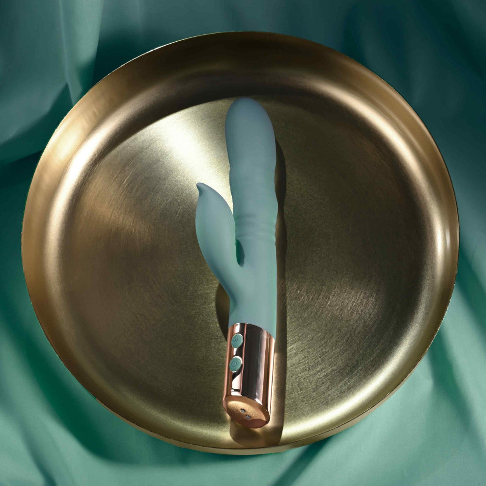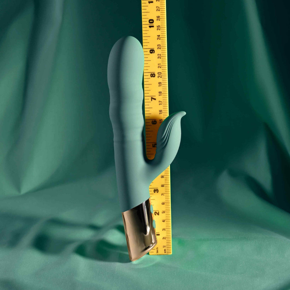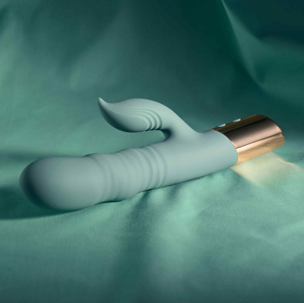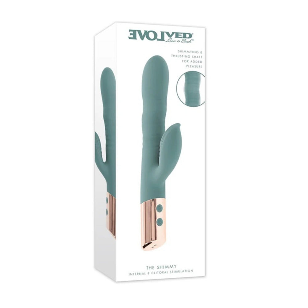 With more motion than your average rabbit, The Shimmy from Evolved thrusts, wiggles, and moves in ways you've probably never imagined! Separately control 3 speeds of undulation and 10 functions of clitoral vibration until the sensations are just right. The clitoral arm is extra flexible to maintain contact with your body, even if you move around. The Shimmy is always ready to play with convenient rechargeable battery and is splashproof for shower-time fun. This toy feels so good, you'll want to do a little shimmy, too!