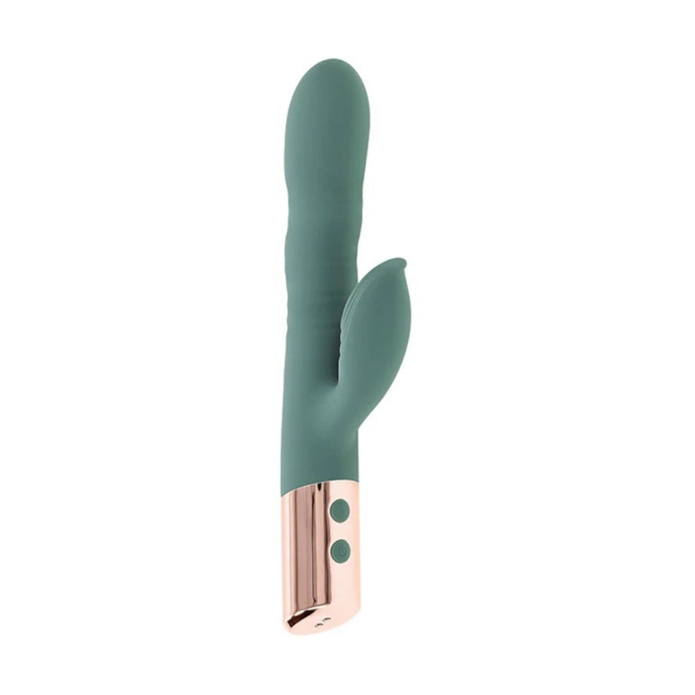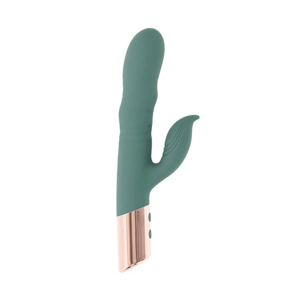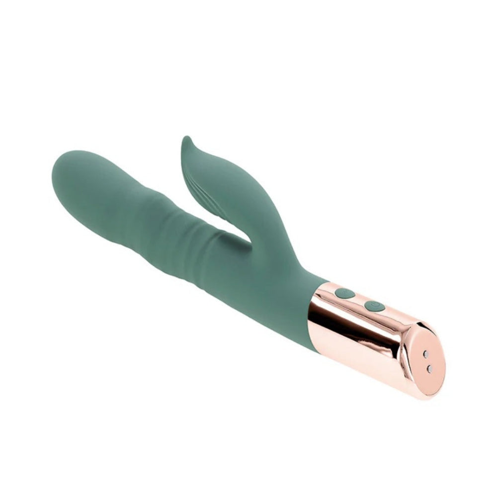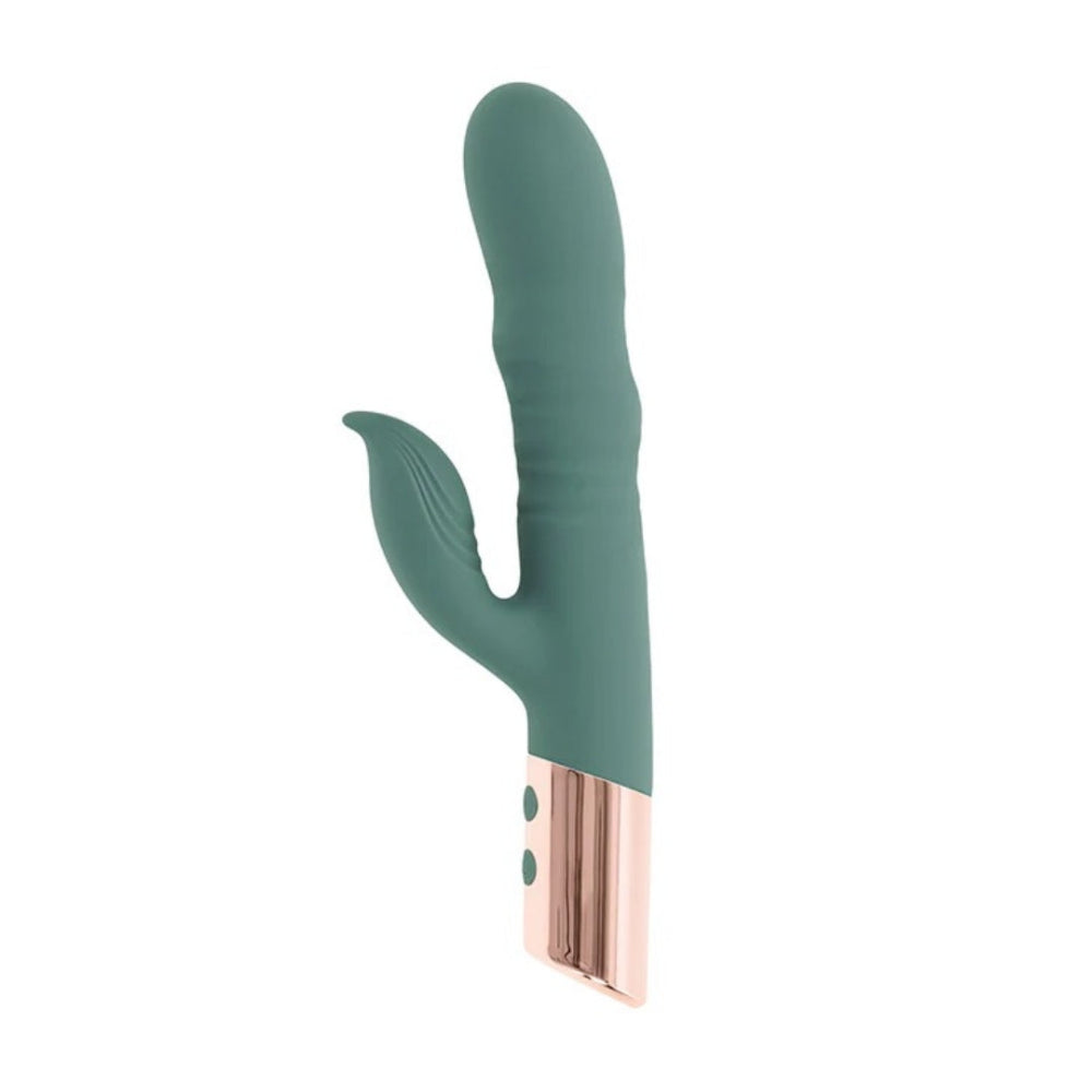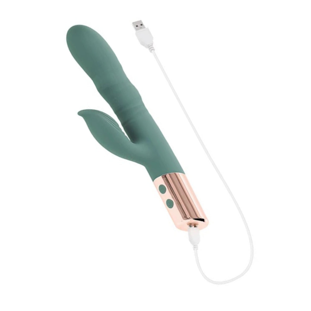 With more motion than your average rabbit, The Shimmy from Evolved thrusts, wiggles, and moves in ways you've probably never imagined! Separately control 3 speeds of undulation and 10 functions of clitoral vibration until the sensations are just right. The clitoral arm is extra flexible to maintain contact with your body, even if you move around. The Shimmy is always ready to play with convenient rechargeable battery and is splashproof for shower-time fun. This toy feels so good, you'll want to do a little shimmy, too!